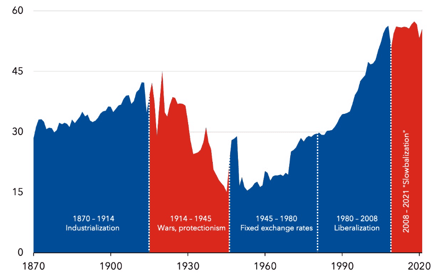 Figure 1 Trend in Global Economic Growth: Sum of Exports and Imports in Percent of GDP