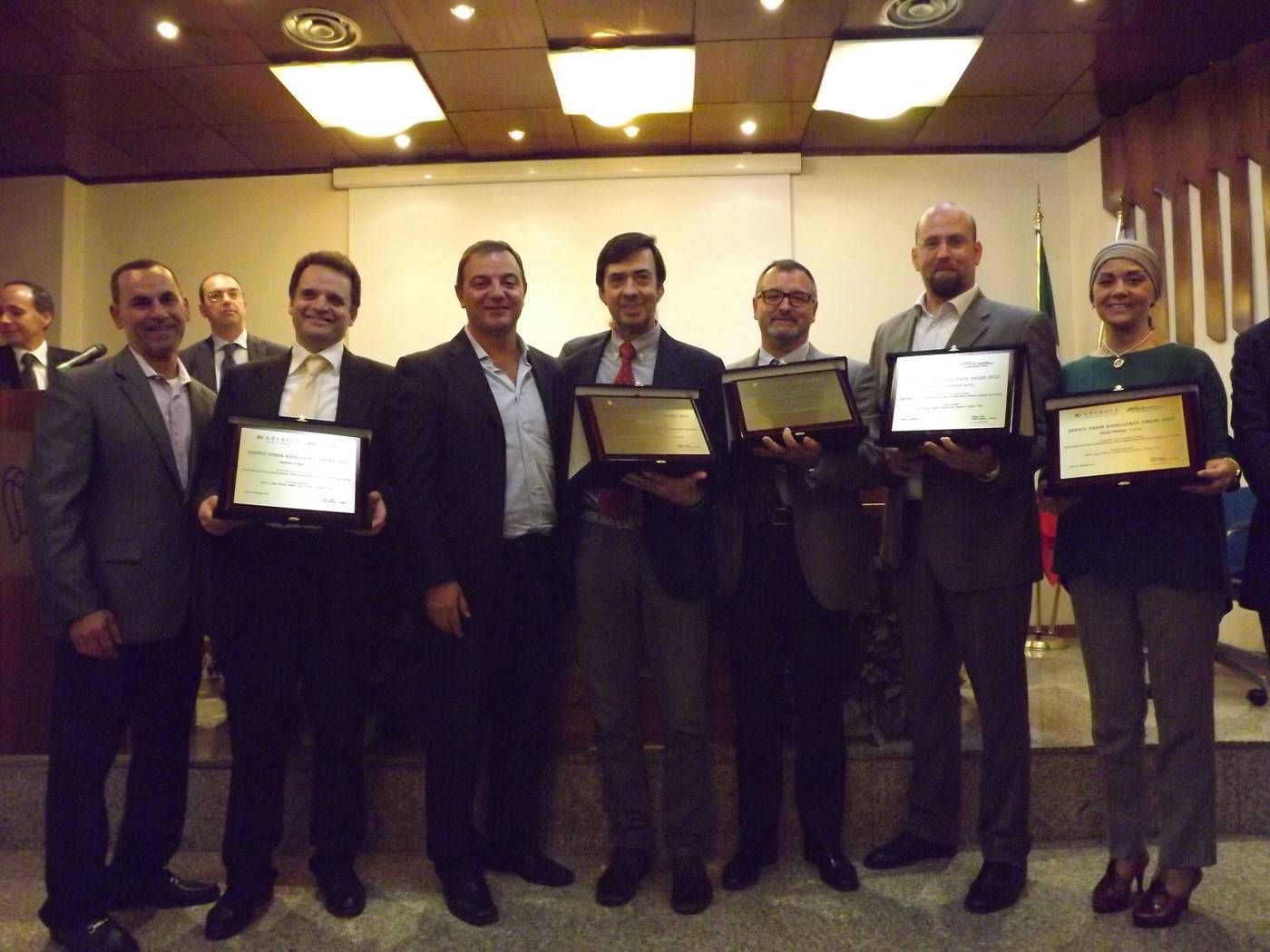 Daniele Meldolesi ha poi invitato sul palco i rappresentanti delle 5 aziende, che hanno ricevuto il prestigioso premio per mano di Abe Eshkenazi, venuto da Chicago appositamente per questo evento.