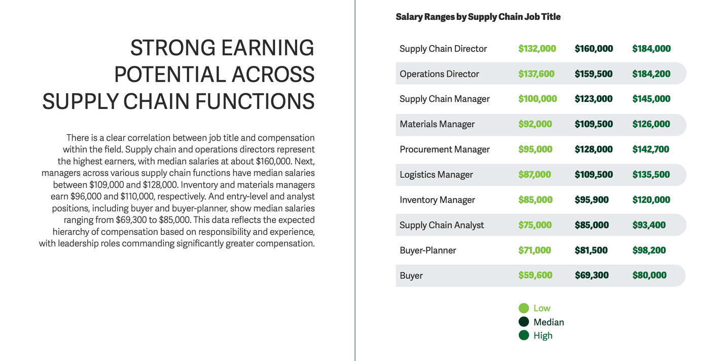 Negli Stati Uniti, il compenso medio nella Supply Chain raggiunge i 103.000 dollari, ben il 52% in più rispetto alla media nazionale. In Italia, la mediana si attesta intorno ai 49.800 euro. In tutto il mondo, la carriera offre margini di crescita rapidi, soprattutto per le nuove generazioni, che registrano frequenti promozioni e mobilità interna.